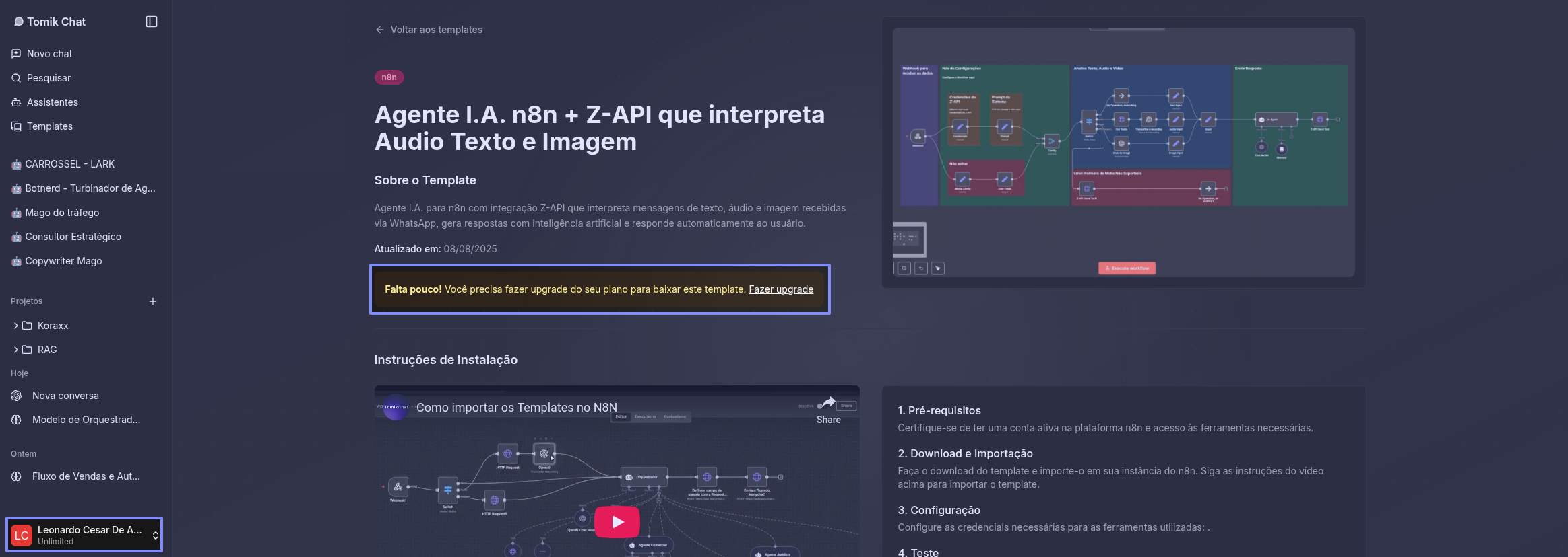Sou do plano ilimitado e não consigo baixar o template.